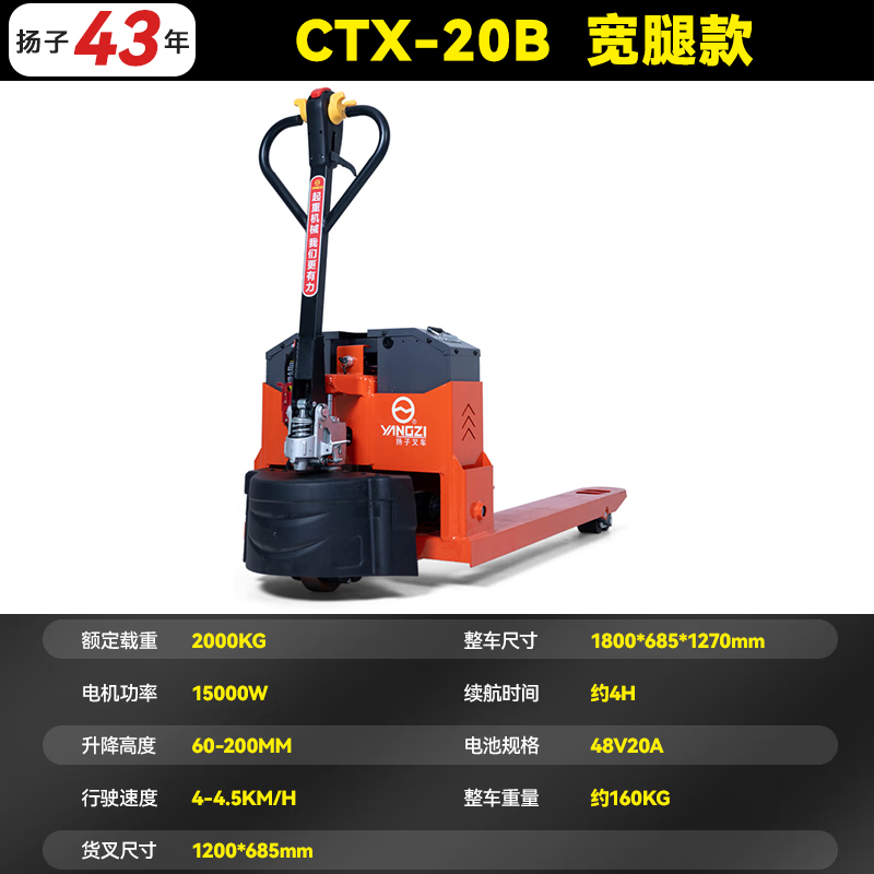 揚子半電動搬運車CTX,電動行走強勁載重,永磁無刷電機/高品質(zhì)油缸/鉛酸鋰電可選