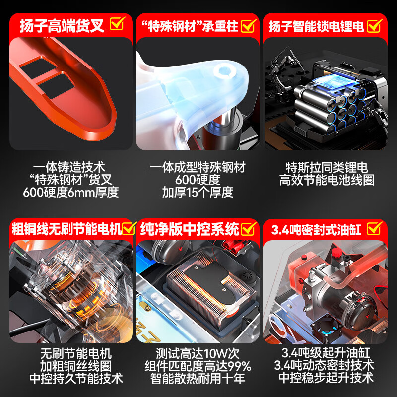 人體工程學(xué)控制手柄,全新升級(jí)加大加厚鋼材,揚(yáng)子自研品牌鋰電池
