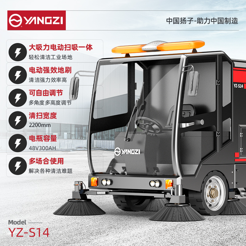揚(yáng)子掃地機(jī)YZ-S14,加寬清潔直徑,領(lǐng)域廣泛應(yīng)用城市街道,一鍵操作 /掃吸二合一/高穩(wěn)定性電控/倒車影像/全車LED大燈/高壓沖洗裝置