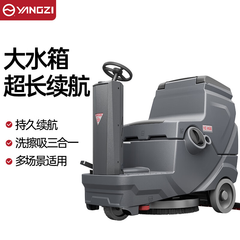 揚(yáng)子洗地機(jī)YZ-X68,一機(jī)多用洗拖刷吸一機(jī)搞定,洗刷吸擦四合一/大容量雙水箱/三電機(jī)驅(qū)動(dòng)/美特膠條/品牌電池/雙層降噪隔音